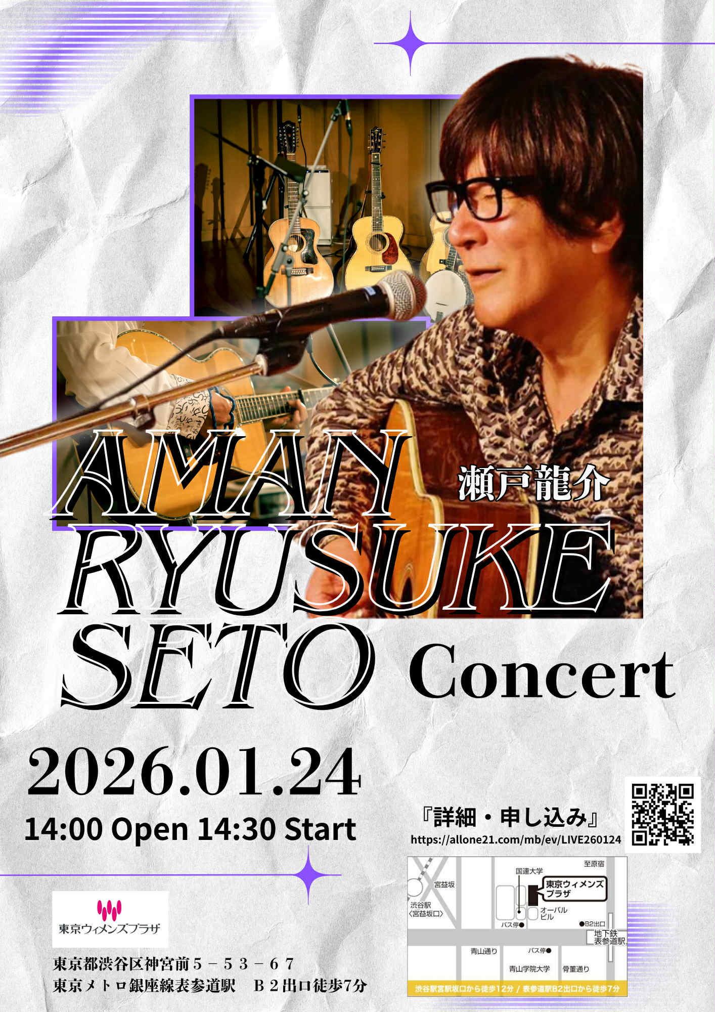 ☆2026年1月24日(土)瀬戸龍介コンサートのお知らせ。